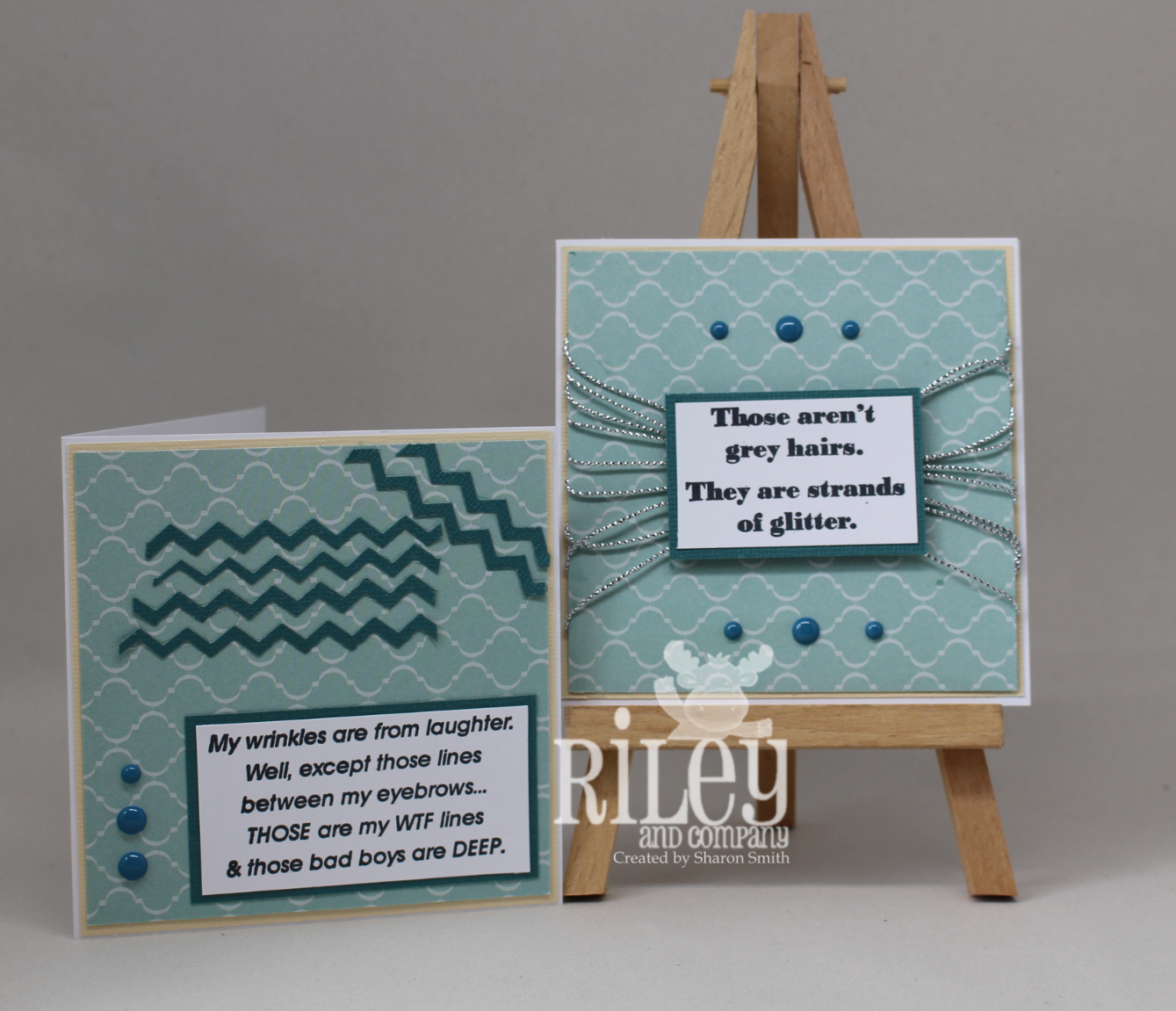 Hi, I’m Sharon. I am married to my best friend and crafting enabler. I live just outside a small farming town in Michigan and I have been a stay at home mom since moving here from the UK 3 and ½ years ago. My passion is card making (and hoarding craft supplies). I love nothing better spending my days in my craft room with my 3 fur babies curled up at my feet, my music blasting and some kind of craft tool in my hand whether it’s a stamp, inkpad, pen, pencil, die or scissors it doesn’t matter to me. My crafting style is usually clean and simple although I do occasionally venture outside my comfort zone and try something different. Stamping and coloring are my favorite methods so being on the Riley and Company design team is my dream playtime (job J) I can almost color Riley in my sleep he is so engrained in my heart.